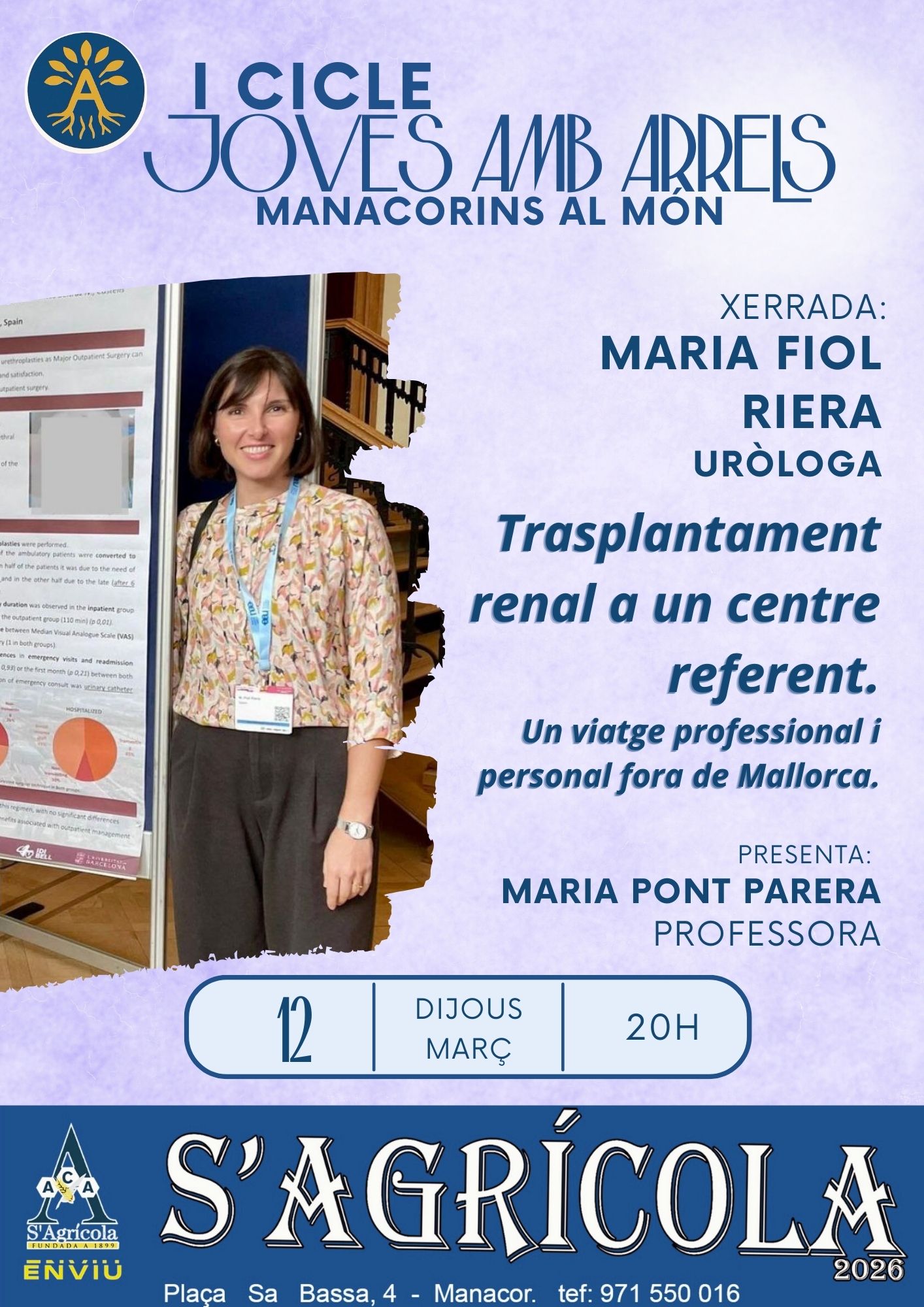 Aquesta xerrada s’emmarca dins el cicle «Joves amb arrels. Manacorins al món» que ha encetat aquest any s’Agrícola per donar veu a manacorins i manacorines que han destacat i triomfat en diferents àmbits professionals arreu del món.